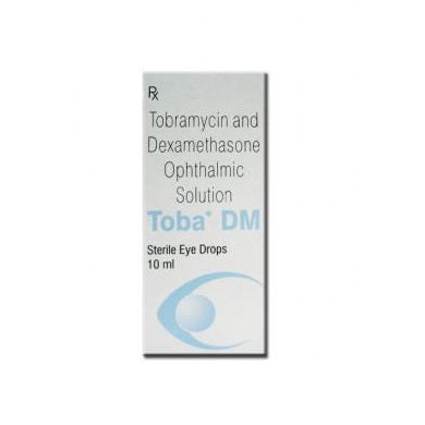 TOBA DM Eye Drop is a trusted ophthalmic solution combining Tobramycin, a potent antibiotic, with Dexamethasone, an effective corticosteroid. This dual-action formula helps treat eye infections while reducing inflammation, redness, and swelling. TOBA DM is commonly prescribed for post-surgical eye care or bacterial conjunctivitis where inflammation and infection coexist.